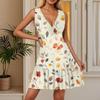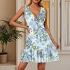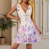 Women's Summer Dress V Neck Sleeveless Casual Floral Print Hem Pleated Dress