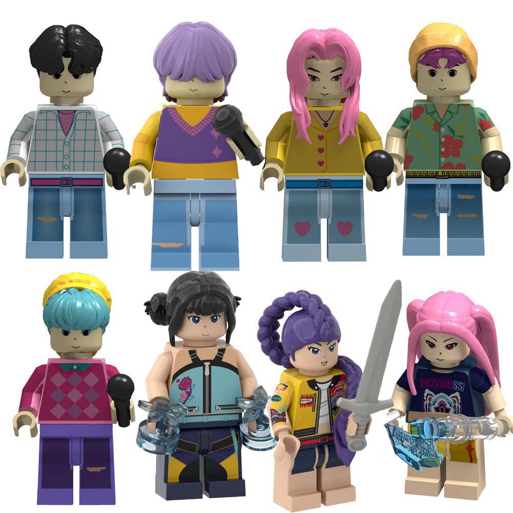 8PCS/3PCS KPOP Demon Hunters Cartoon Dolls Building Blocks Kawaii Action Figure Assembly Toy Children's Educational Toys Gifts