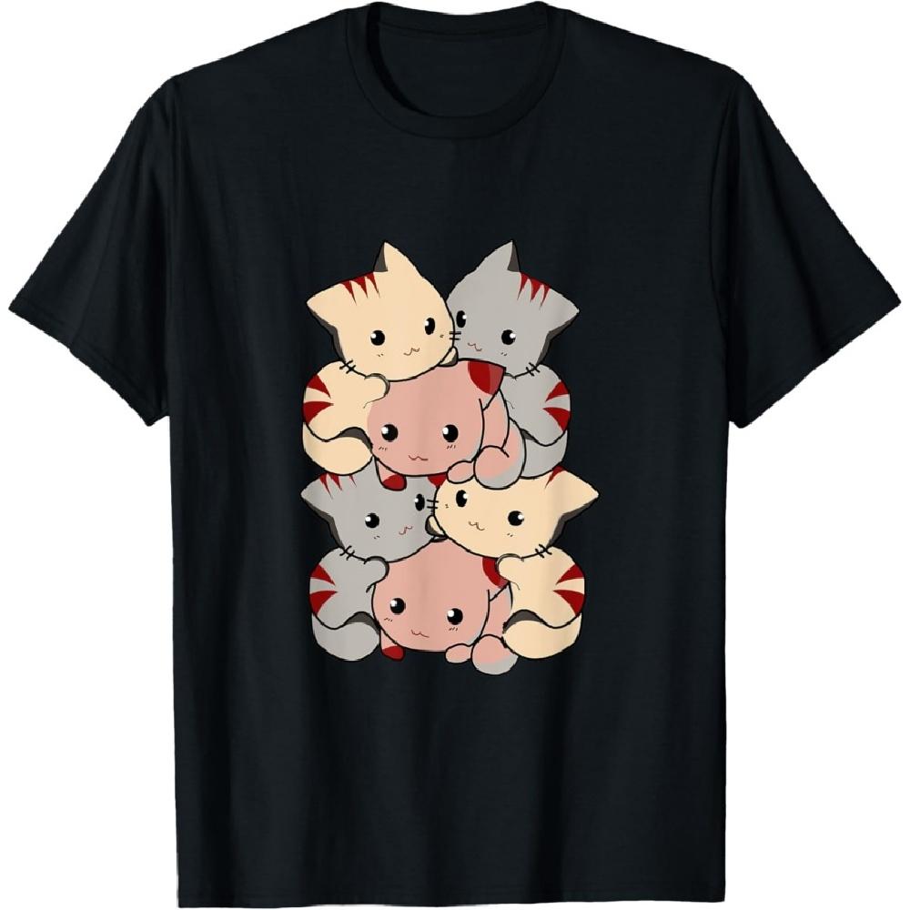 Cat Cats Cute Kitty Pile Anime Kawaii Neko T-Shirt(1)