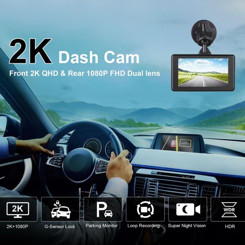 3-inch HD Dashcam, Dual-lens 2K+1080 WiFi Dual-channel Car Recorder