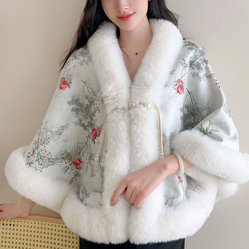 Small Cape Shawl Jacket Women'S Short Printed Velvet Thickened Rex Rabbit Hair Collar Sleeveless Cheongsam Wedding Dress