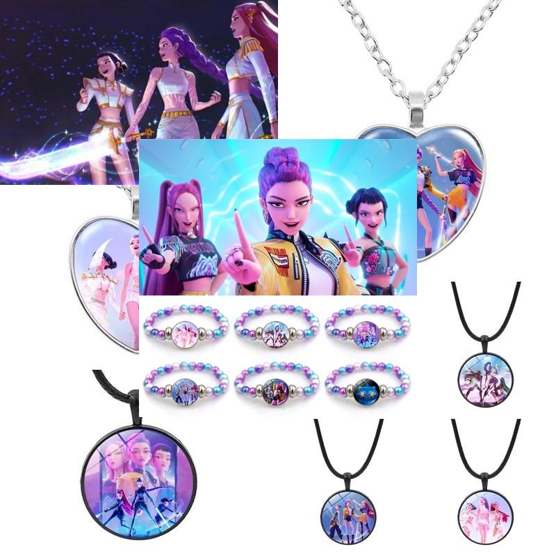 Kpop Demon Character Necklace Hunter Huntrix Cartoon Hanging Pendants Necklace for Fans Gifts Saja Band Fan Bracelet Gifts