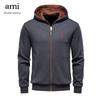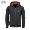 AMI 2025 Autumn and Winter Embroidery New Men's Hooded Sweatshirt with Plush Insulation, High-quality Color Blocked Men's Top