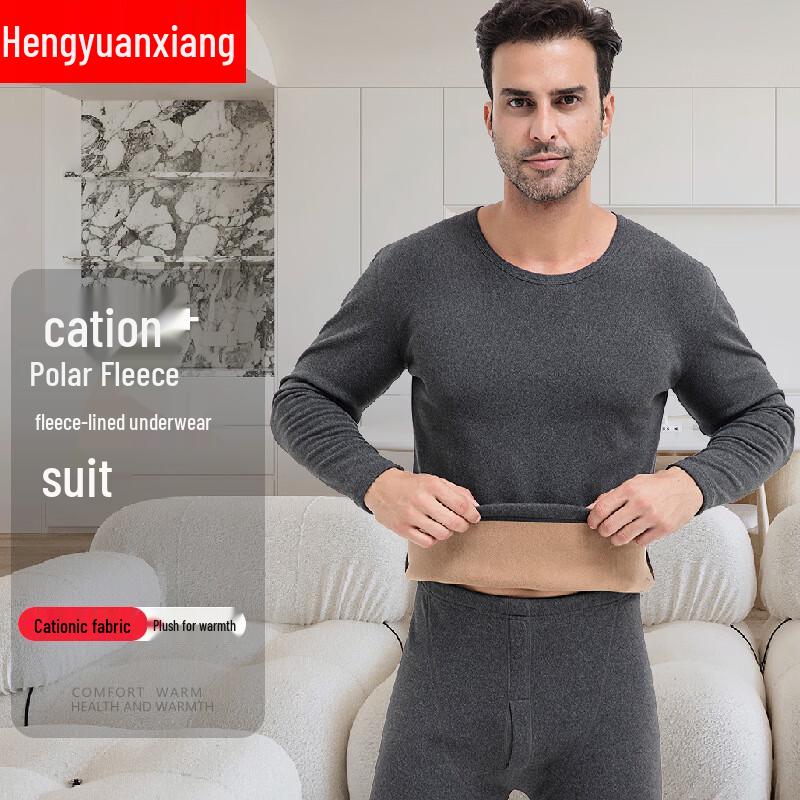 Hengyuanxiang Men's Thickened Fleece Thermal Underwear Set