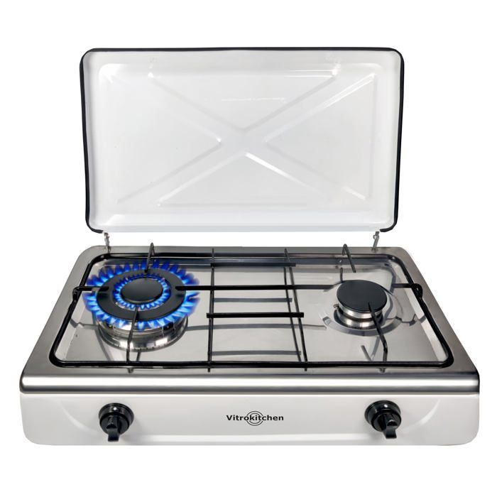 Plaque à gaz - Vitrokitchen - Bouton poussoir - Multicolore - 69x68x19 cm - Gaz naturel - Acier allié