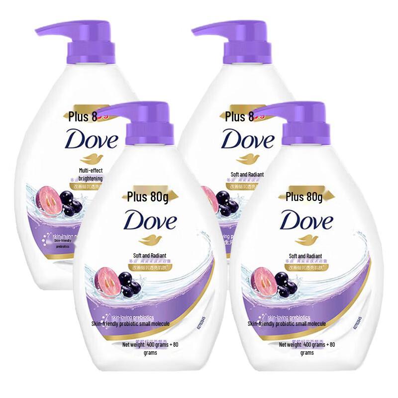 DOVE Grape Seed & Acai Berry Soft & Radiant Shower Gel, 4 X 480g