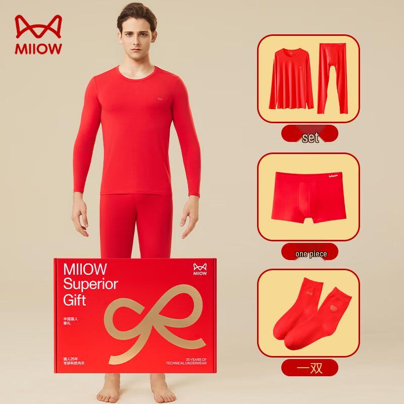 MaoRen Men's Red Premium Thermal Underwear 3-Piece Set