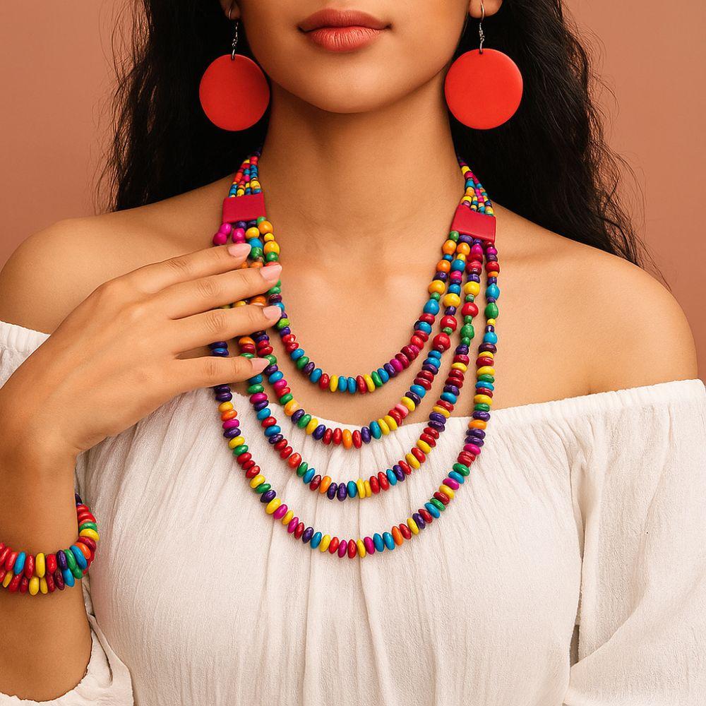 Handmade Bohemia Necklace Set Colorful Geometric Beaded Necklace Vintage Boho Bib Beads Party Wear