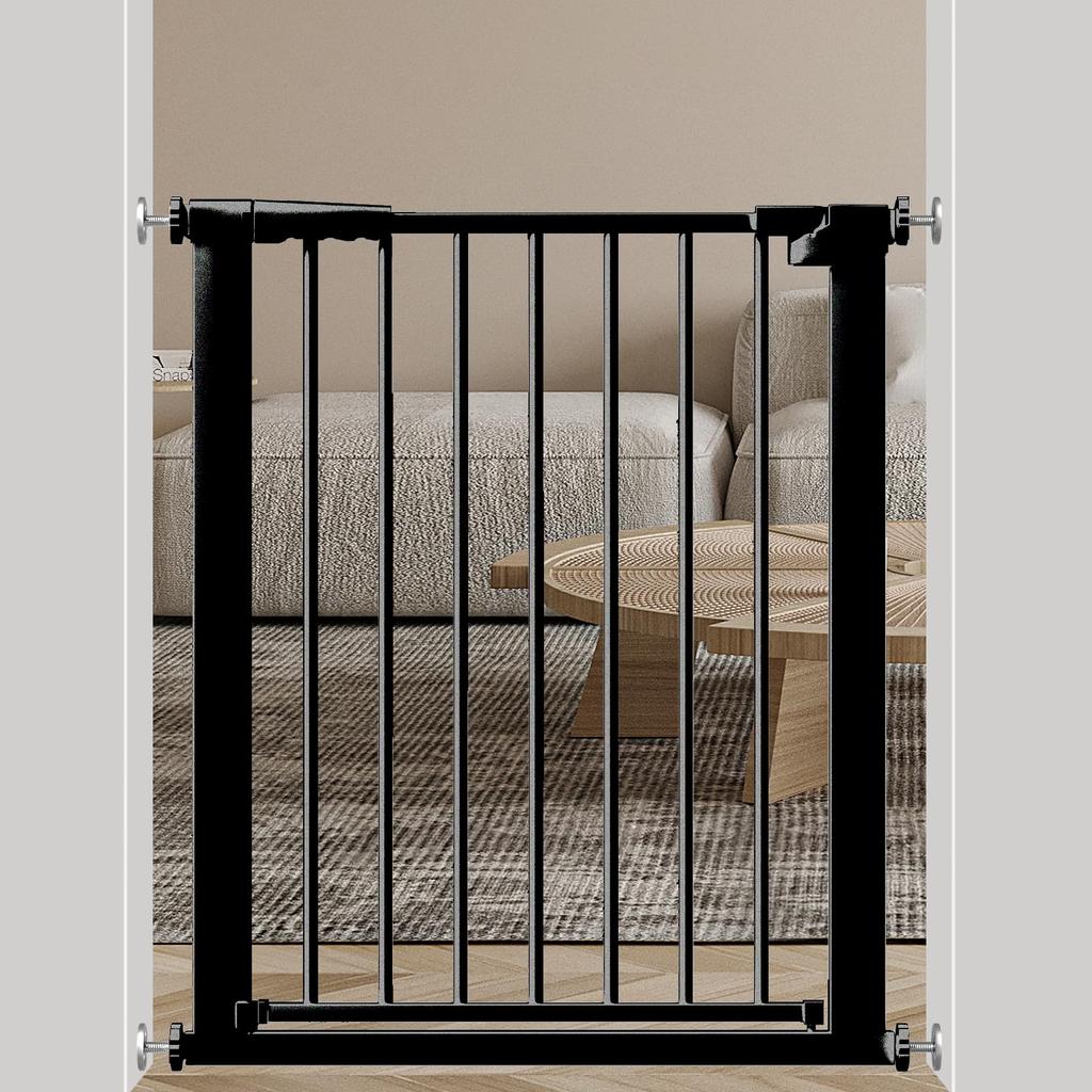 Seogva Baby Gate, Mounting Width 69-76cm, Height 78cm, Black, Tension Type, Barrier-Free Baby Gate, Pet Gate, Steel Gate with Door, Divider Gate