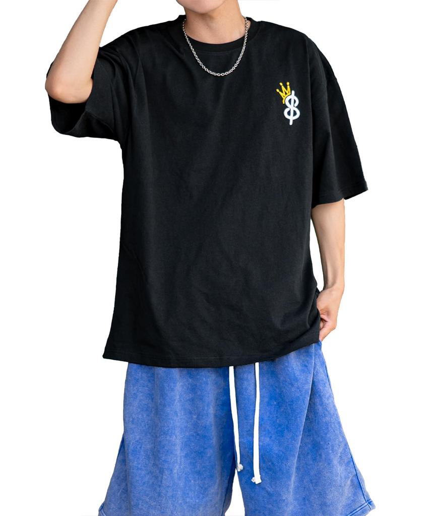IMPROMES Casual SIDEWAYSTANCE Men's Black Short Sleeve T-Shirt with Thick Embroidered Crown S Logo