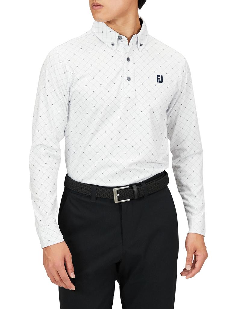 FootJoy Modern Classic FJ Argyle Heat-Retaining Long-Sleeve Button-Down Shirt, Men's, White, Size M (FJ-F23-S10)
