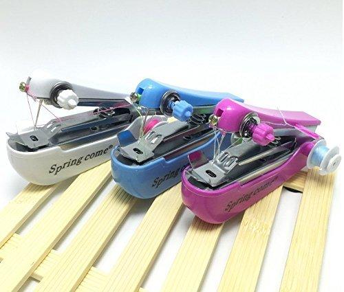 KUWAN Portable One-Hand Sewing Machine, Mini Handheld Manual Sewing Machine with Threader and Take-up Rod, Random Color