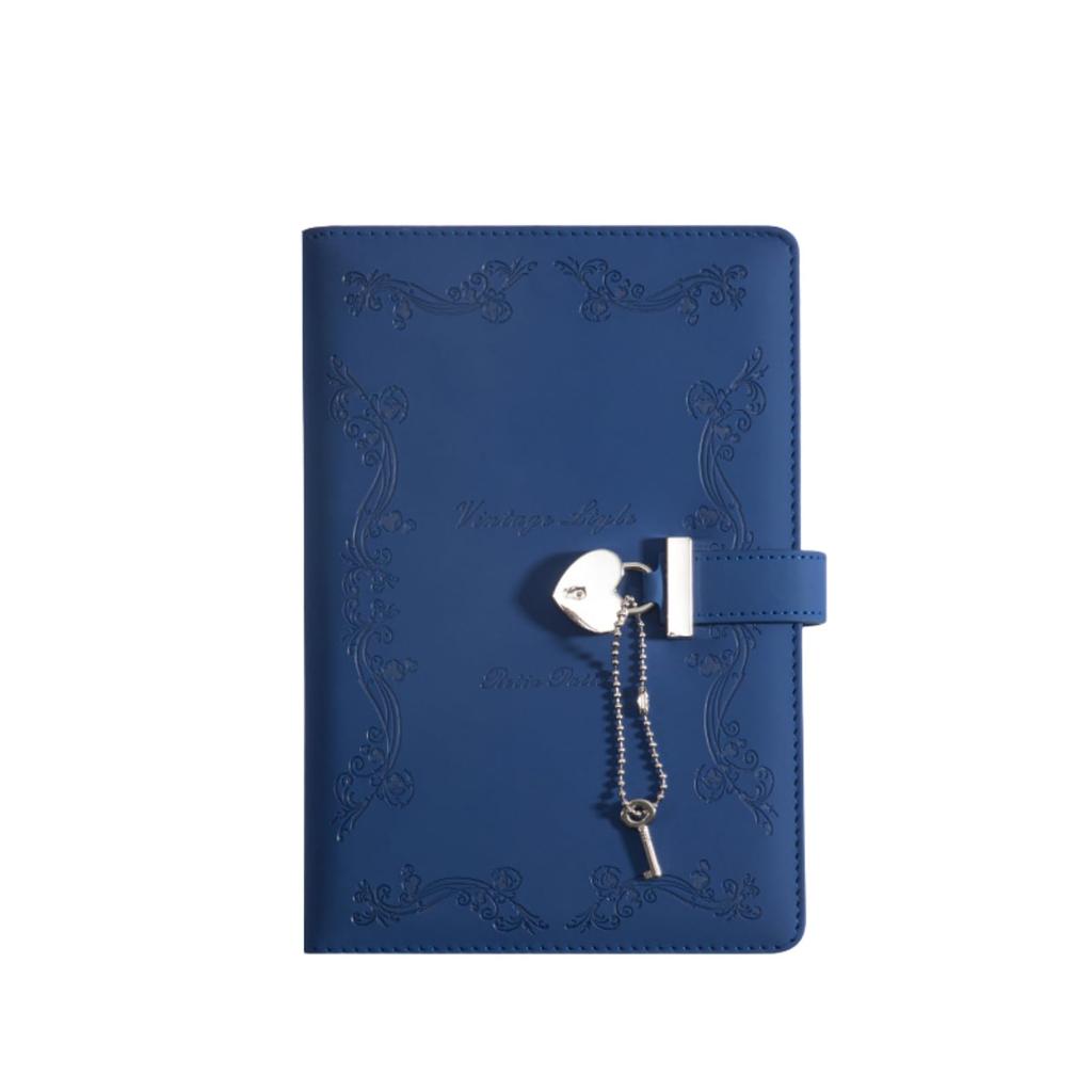 COZENTA A7 Notebook/Diary with Lock, PU Leather Refill, Cute Heart Lock (Navy)
