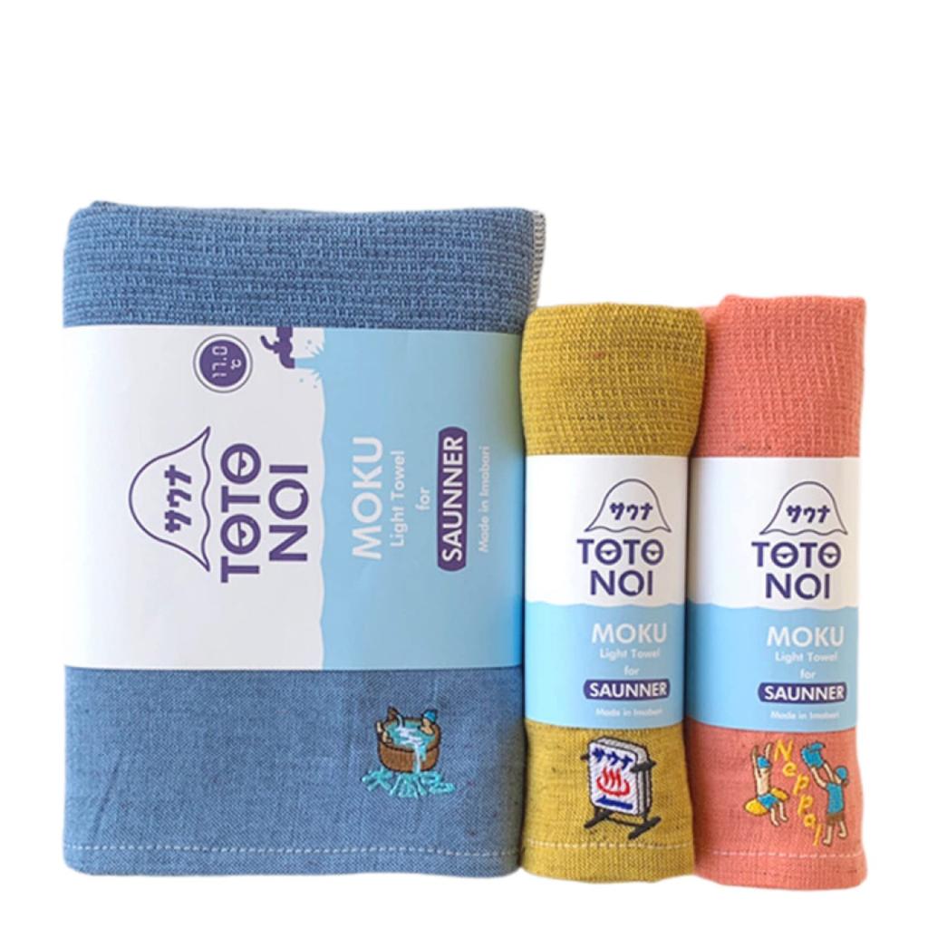Kontex Sauna MOKU (58507-90) Set of 1 Large and 2 Medium Sauna Signs: Blue Cold Bath, Yellow Sauna Sign, and Mandarin Heat Wave Sign