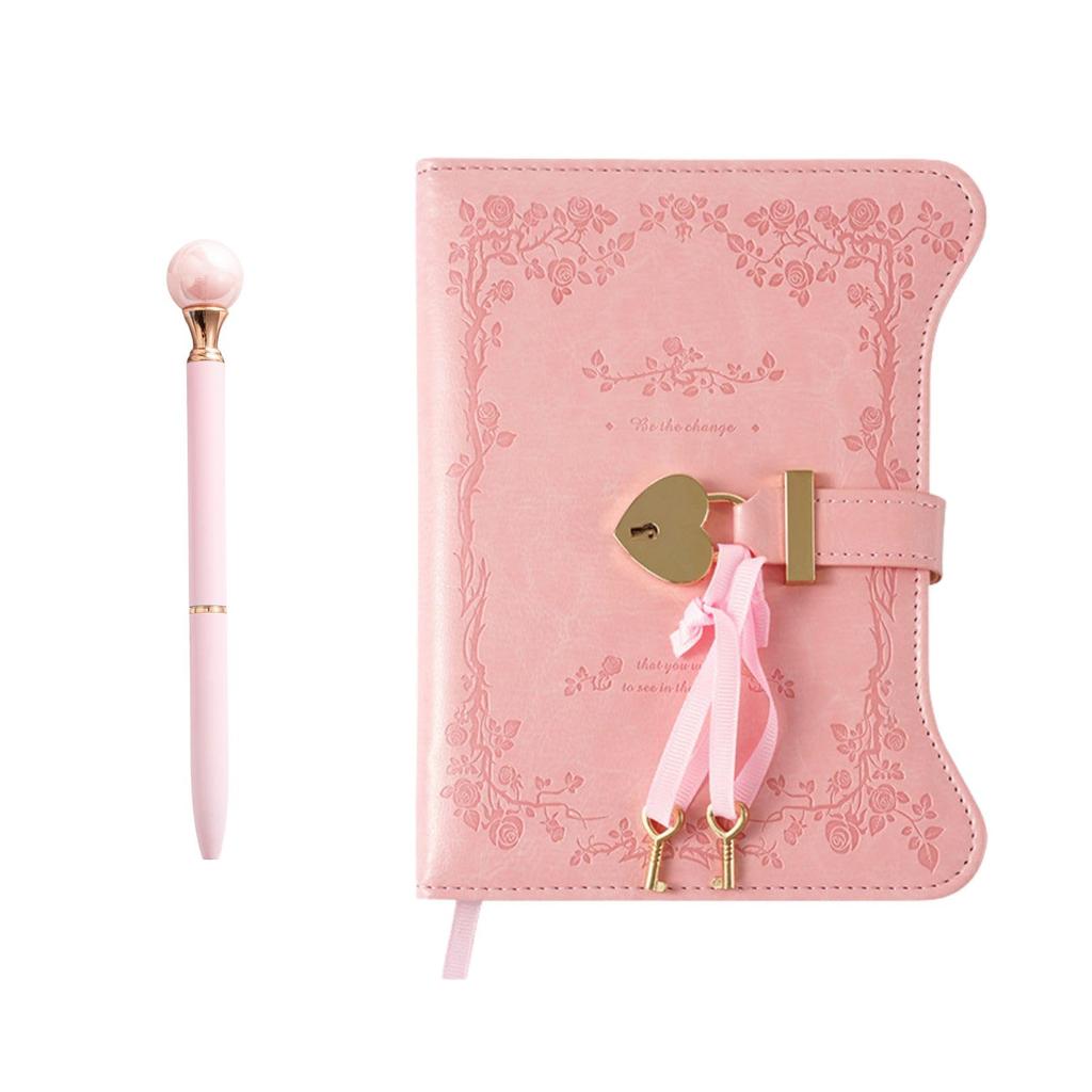 Heart-shaped Diary with Lock, Perfect As a School Entrance Gift, B6 Notebook, Refillable, Horizontally Ruled, Perfect for Children (pink)