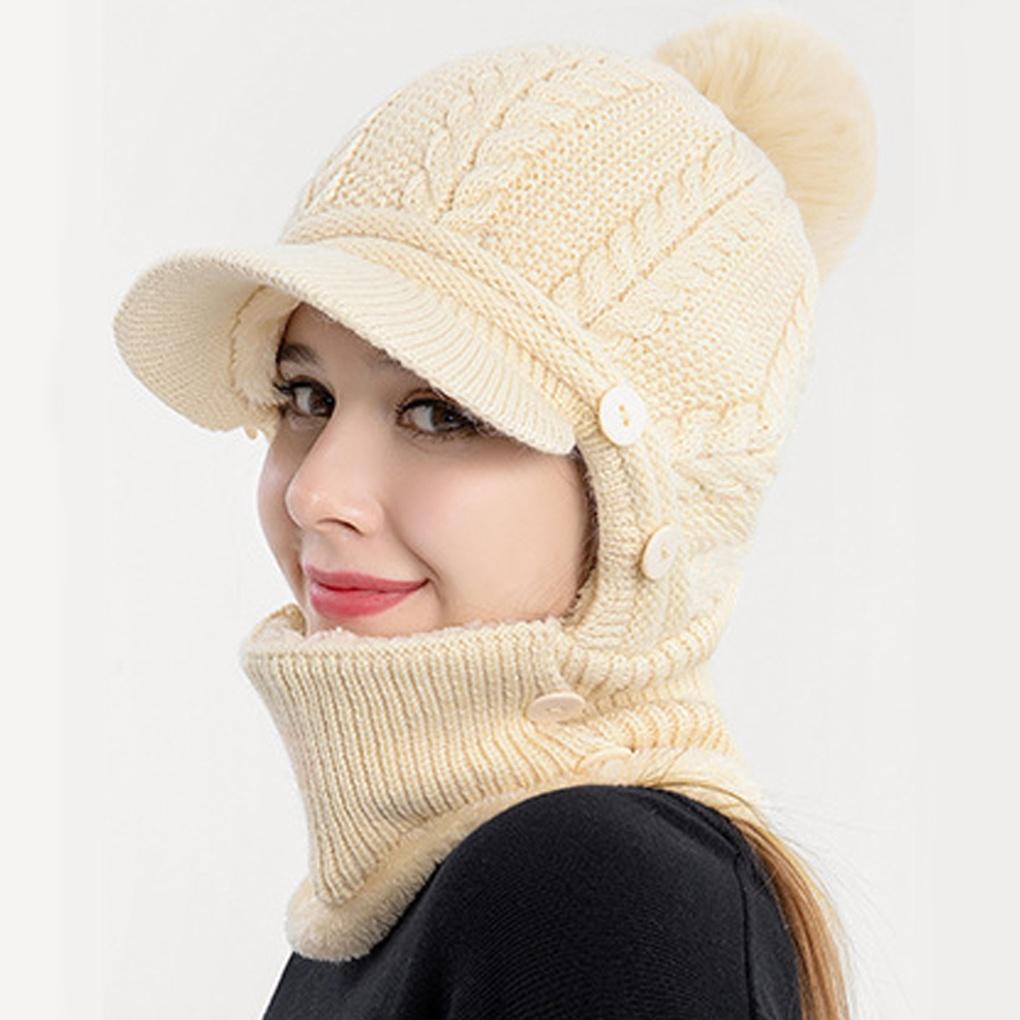 Winter Cold Weather Knit Neck Warmer Fur Pom Pom Brim Hooded Neck Hat
