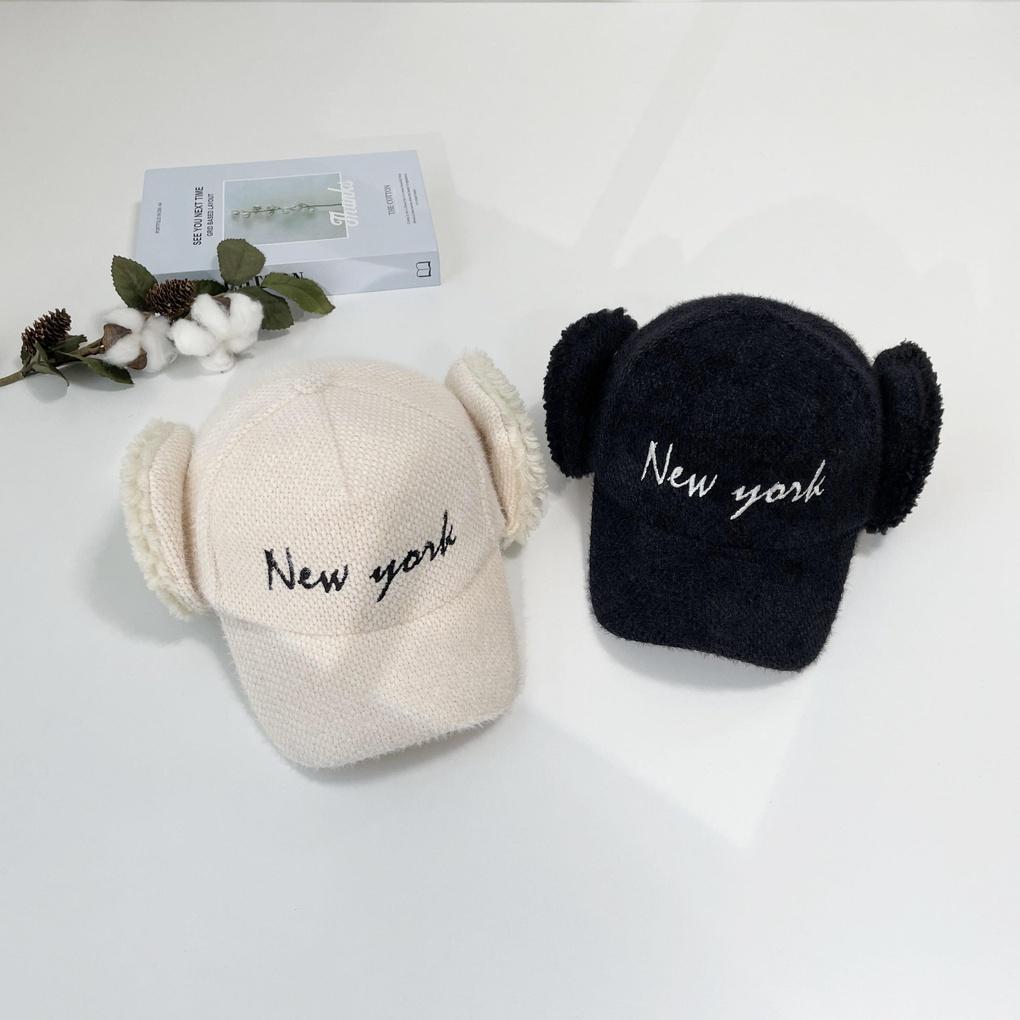 Unisex Basic Daily New York Wool Earflap Ball Cap