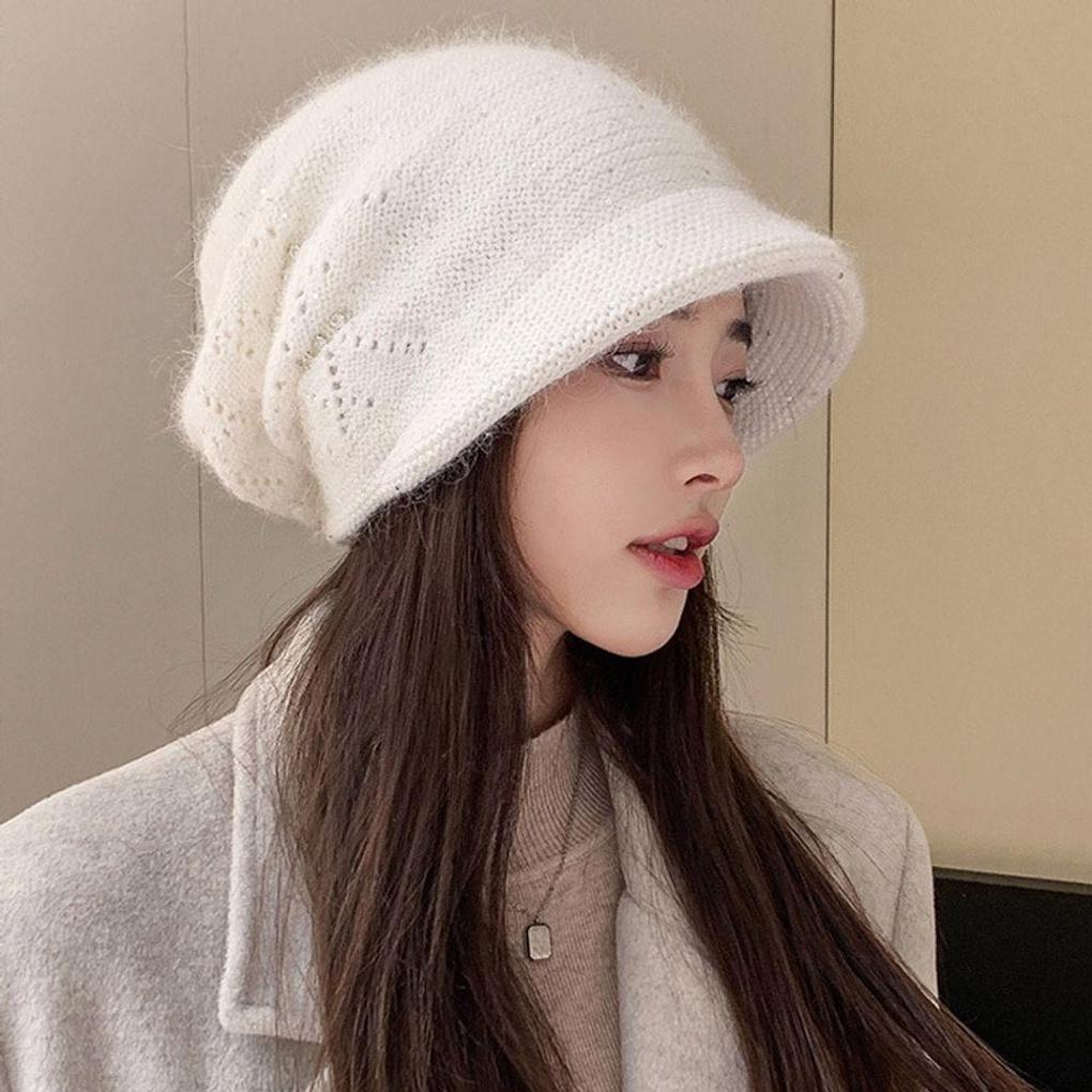 Women's Winter Cubic Point Brimmed Earflap Beanie Hat
