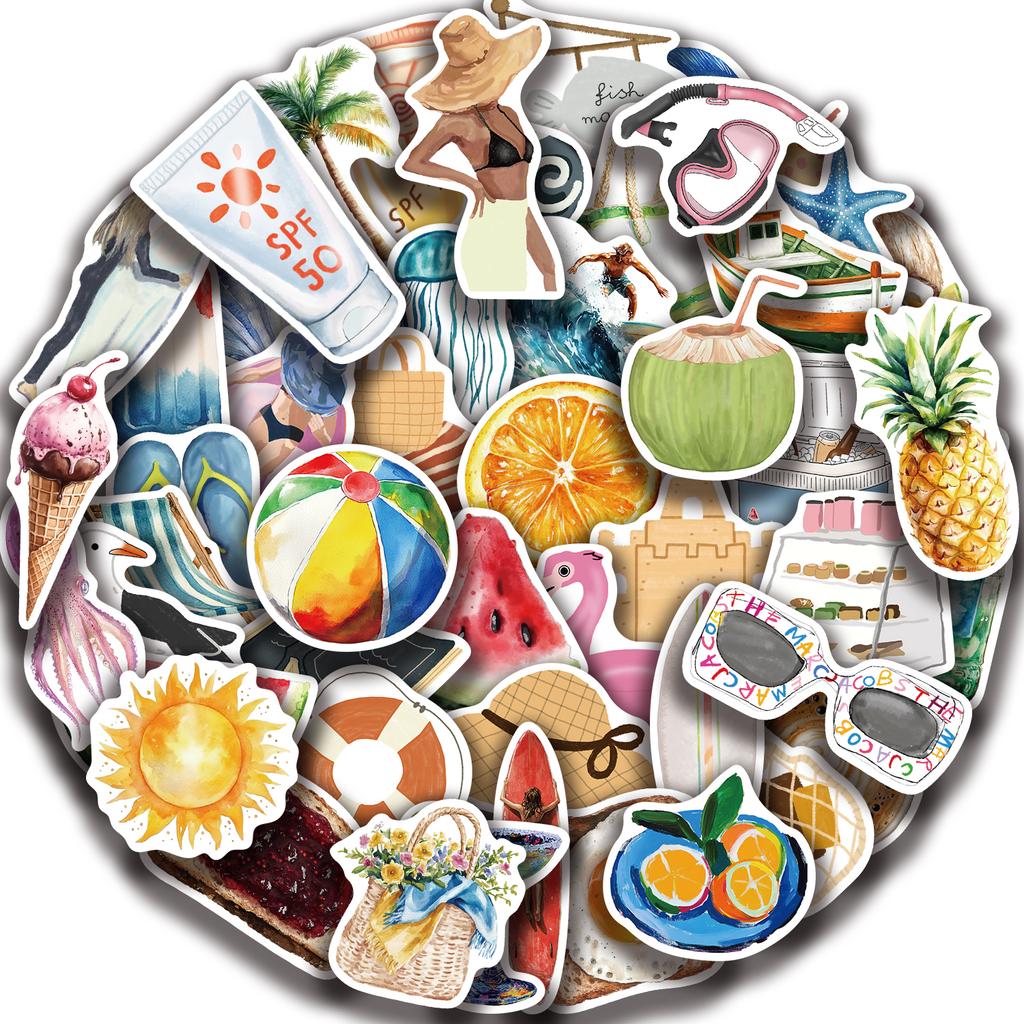 50pcs Boat Beach Pool Day Stickers Colorful Graffiti Cell Phone Notebook Cup Luggage Decoration Waterproof Stickers