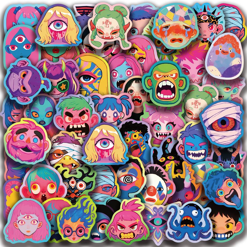 50PCS Abstract Painting Stickers Colorful Characters Portrait Cup Computer Cell Phone Decoration Waterproof Stickers
