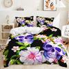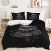 Three-Piece 3D Quilt Cover Rose Skull Dark Wind Kit Bedding