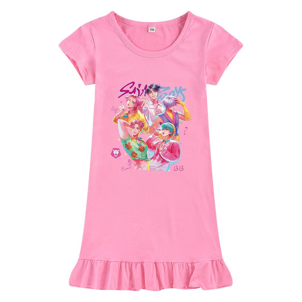 M1207 Kids Girls Sajaboys Kpop Rumi Zoey Mira Print Short Sleeves Ruffle Dress