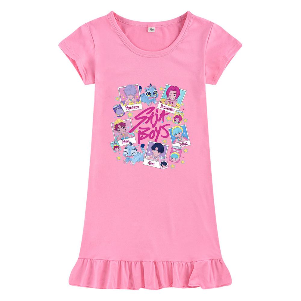 M1206 Kids Girls Sajaboys Kpop Rumi Zoey Mira Print Short Sleeves Ruffle Dress