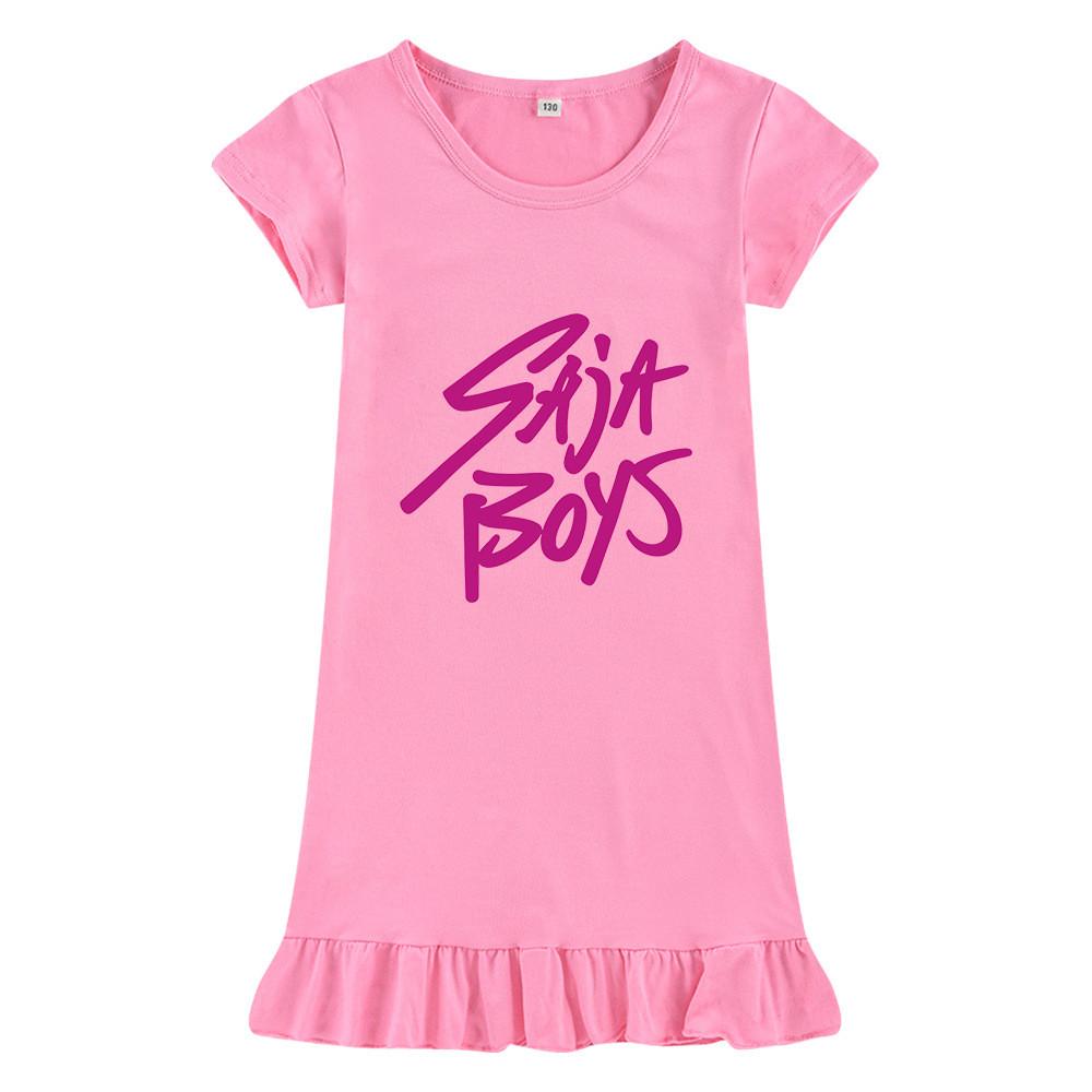 M1205 Kids Girls Sajaboys Kpop Rumi Zoey Mira Print Short Sleeves Ruffle Dress