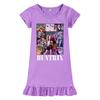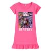 M1223 Kids Girls Kpop Rumi Zoey Mira Print Short Sleeves Ruffle Dress