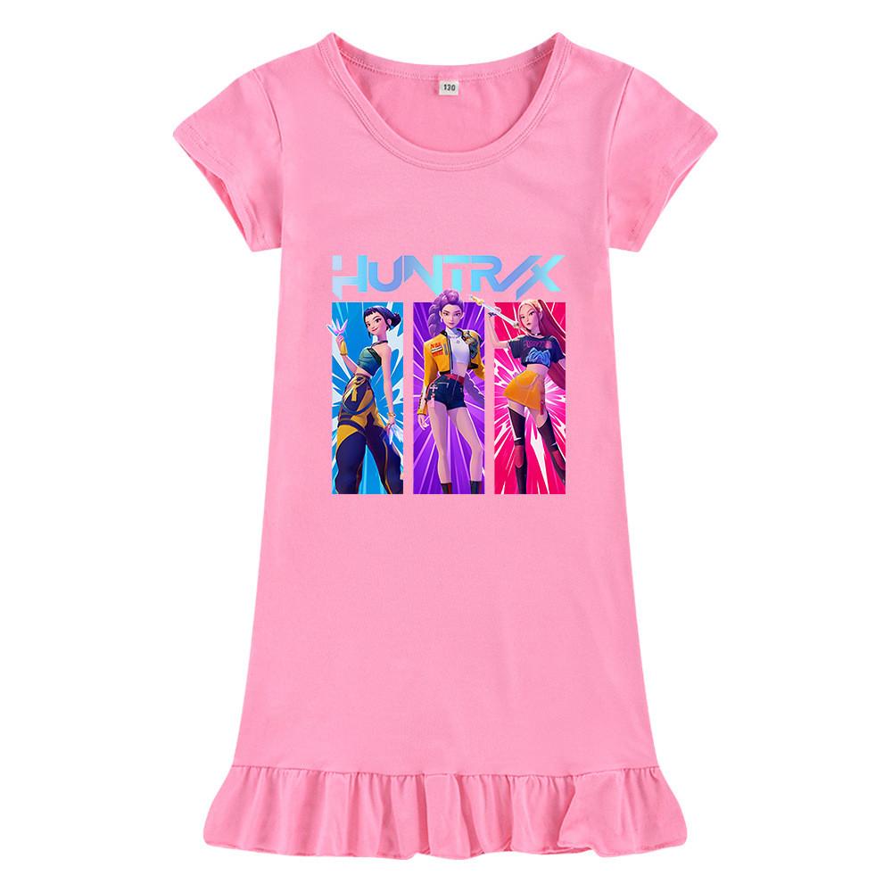 M1221 Kids Girls Kpop Rumi Zoey Mira Print Short Sleeves Ruffle Dress