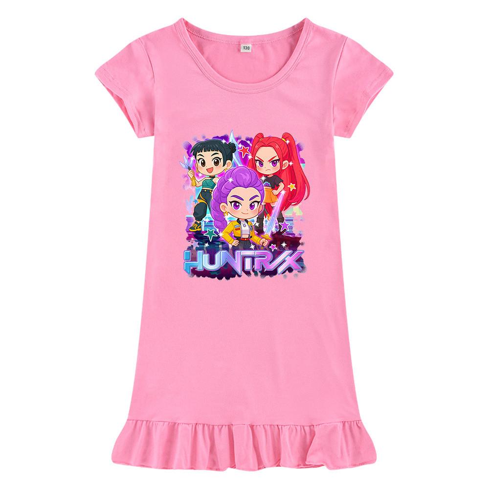 M1222 Kids Girls Kpop Rumi Zoey Mira Print Short Sleeves Ruffle Dress
