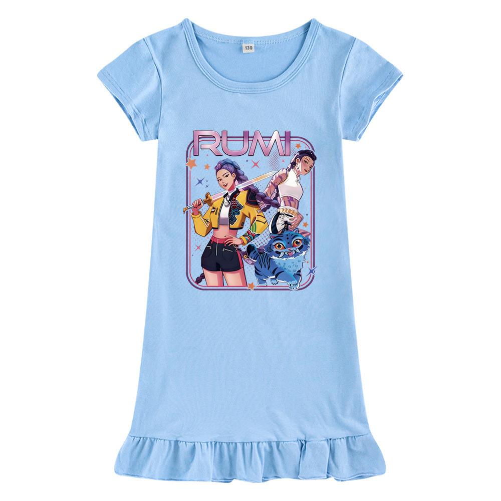 M1249 Kids Girls Kpop Rumi Zoey Mira Print Short Sleeves Ruffle Dress