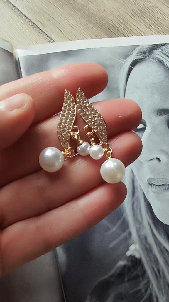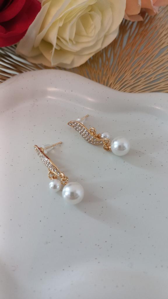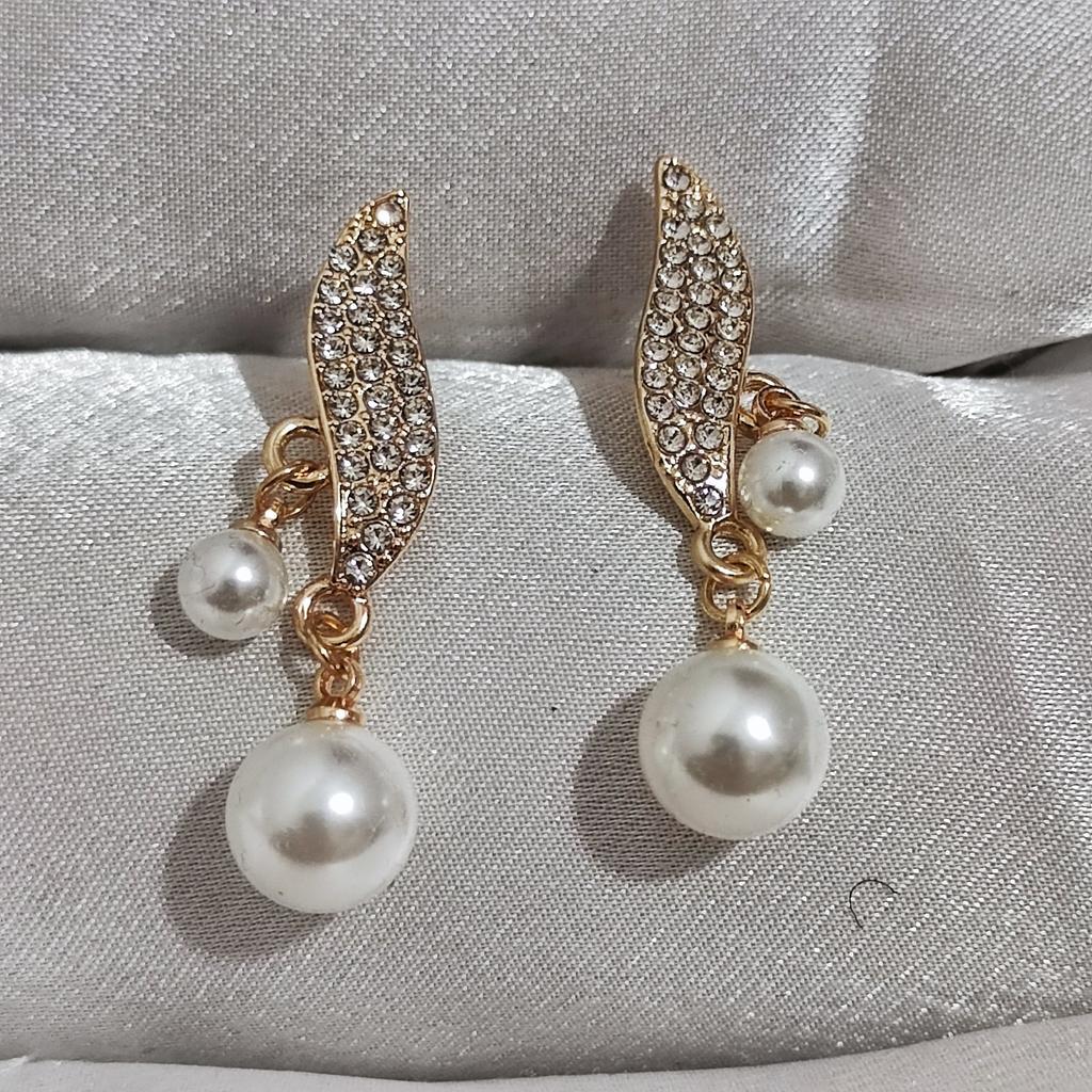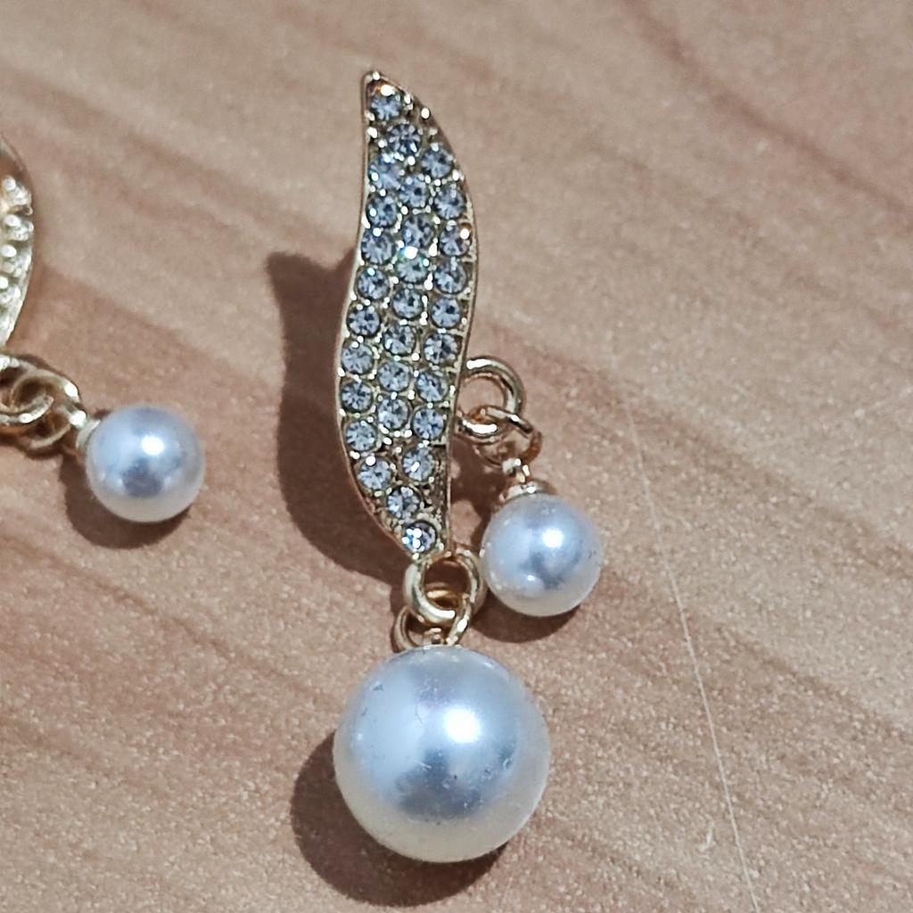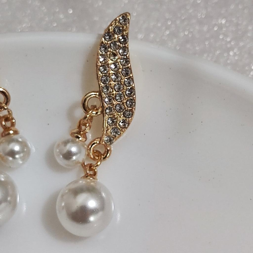 EARRINGS Earrings with double pendant pearl and crystals. arrived in Italy with tracked shipping in 20 days. Fast shipping. Well wrapped in a sheet of bubble wrap, they arrived intact. packaging: They are supplied in a plastic bag without the cardboard backing. Excellent value for money. The metal color is gold in zinc alloy. Back closure: in silicone, very secure No glue stains and no defects. the crystals are well set. The purchase is recommended👌👌👌👌👌