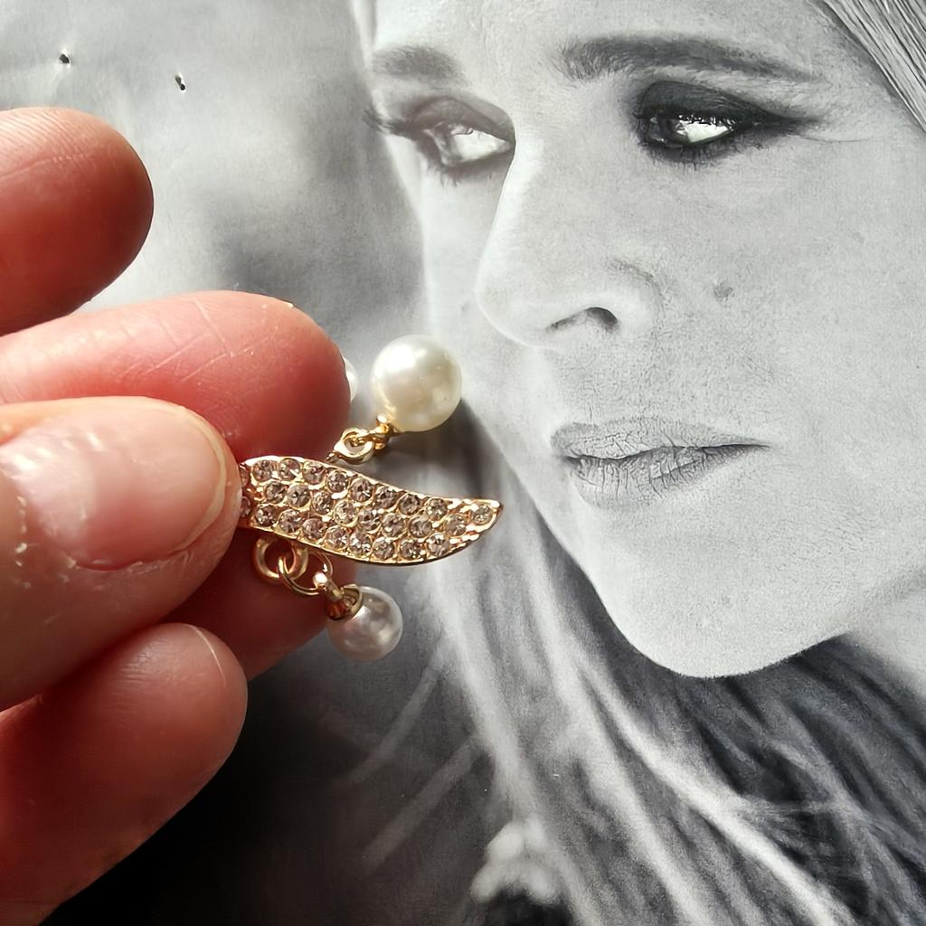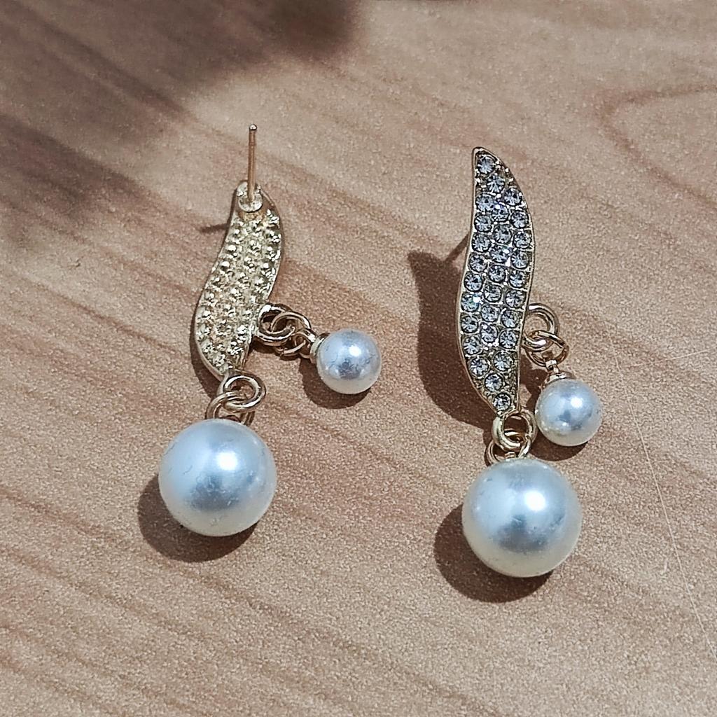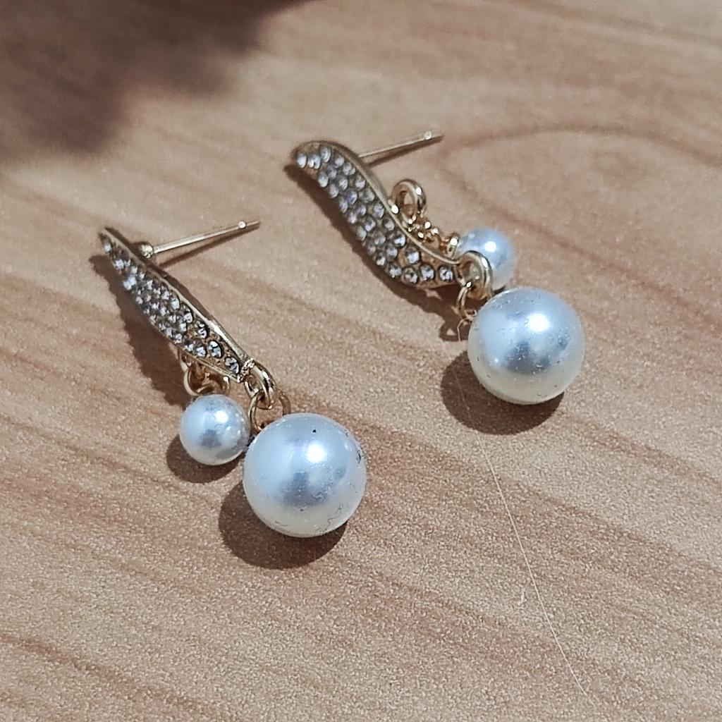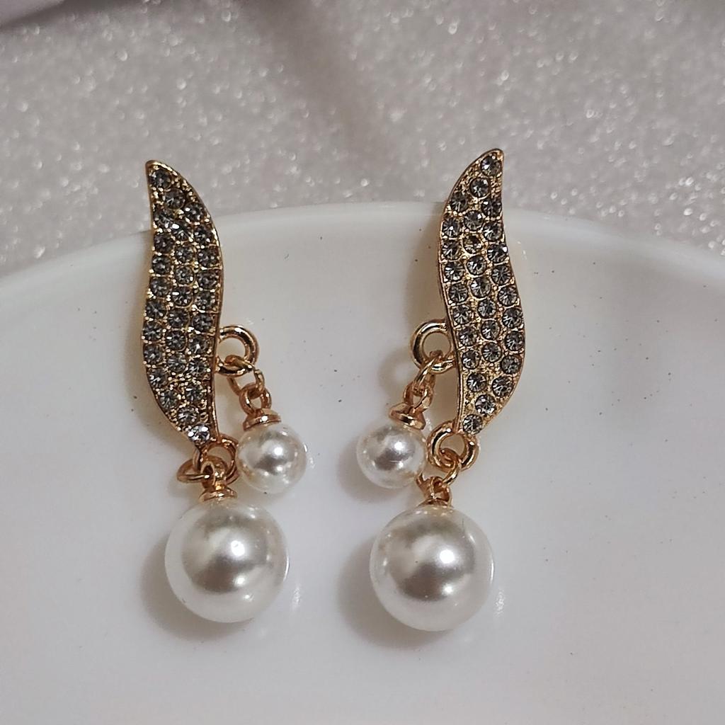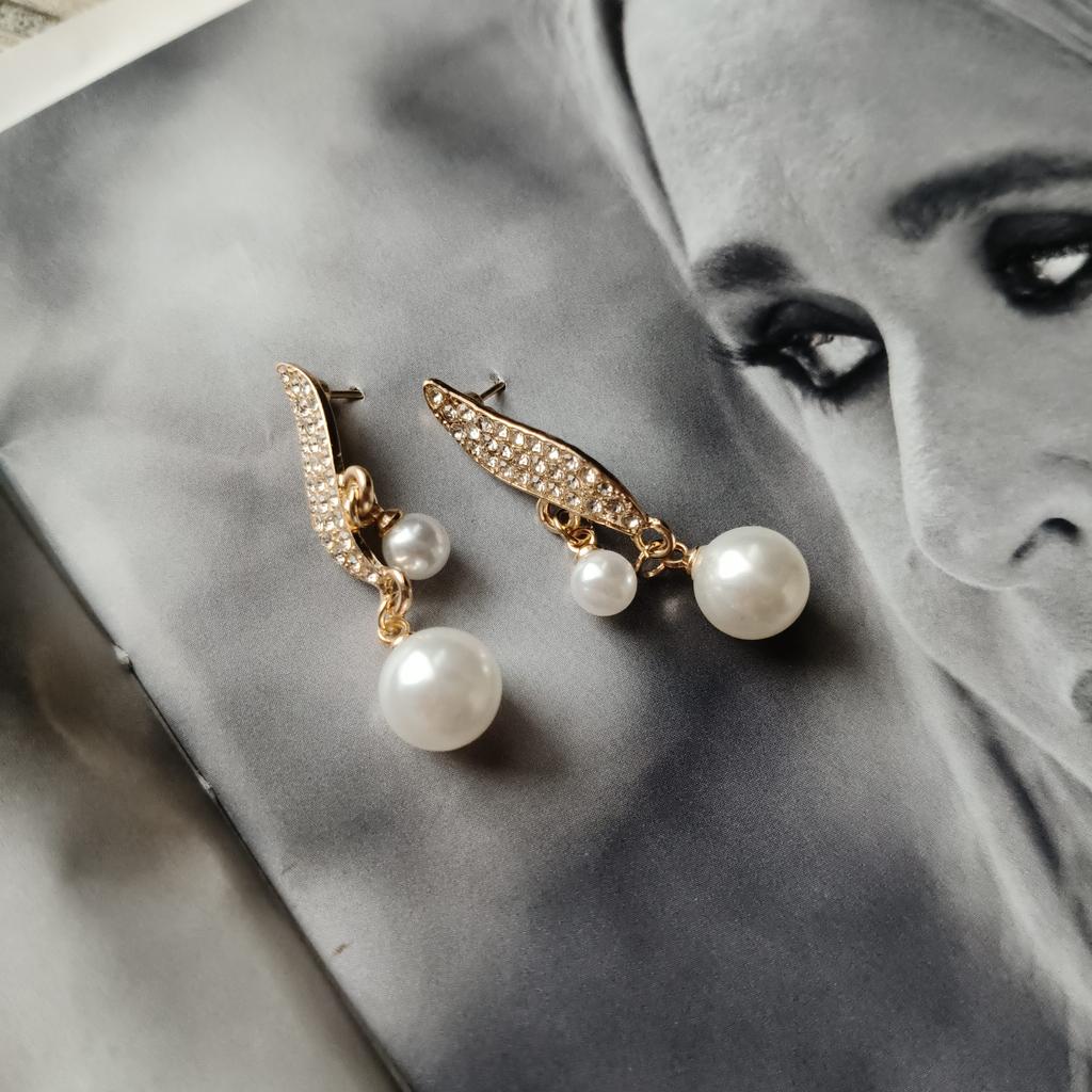 EARRINGS Earrings with double pendant pearl and crystals. arrived in Italy with tracked shipping in 20 days. Fast shipping. Well wrapped in a sheet of bubble wrap, they arrived intact. packaging: They are supplied in a plastic bag without the cardboard backing. Excellent value for money. The metal color is gold in zinc alloy. Back closure: in silicone, very secure No glue stains and no defects. the crystals are well set. The purchase is recommended👌👌👌👌👌