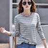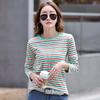T-Shirt Woman Korea Loose Cotton T Shirt Women Casual Top Tee Green Black Striped Long Sleeve Tshirt Basic