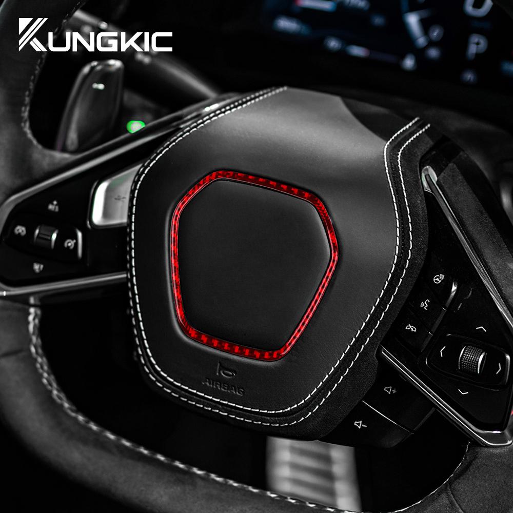 Real Soft Carbon Fiber Sticker For Chevrolet Corvette C8 2020 2025 2025 2025 Car Steering Wheel Center Frame Ring Accessories