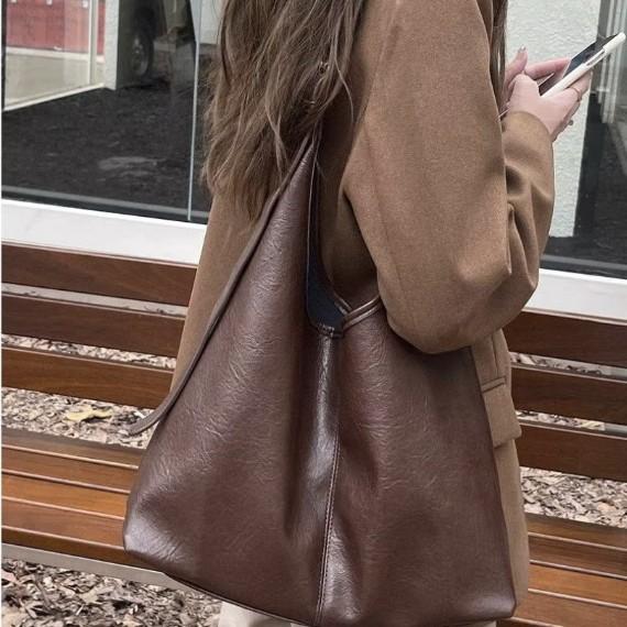 Large Capacity Bag for Women 2025 New Simple Soft Leather Single Shoulder Underarm Bag Retro Commuter Crossbody Mother-Daughter Bag