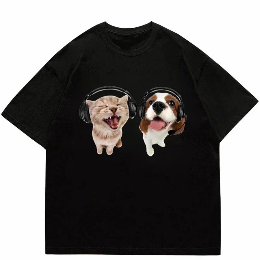 T-shirt Women's Fashion Summer Men's Women's Unisex Hip Hop Cute Cat Harajuku Y2K Printing Leisure Outdoor Fitness Cotton