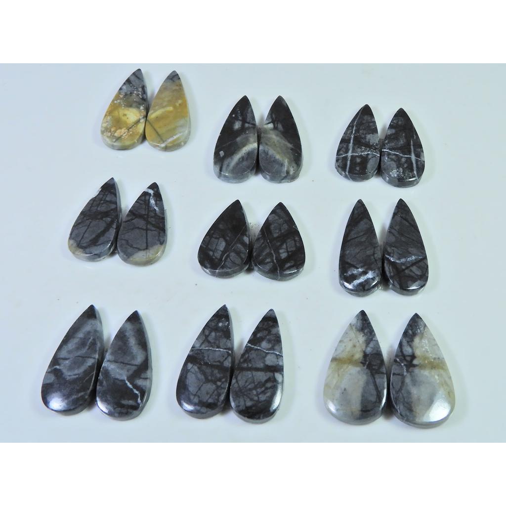20-26MM Natural Picasso Jasper Matched Pair Pear Cabochon Gemstone 9Pair Lot C-786