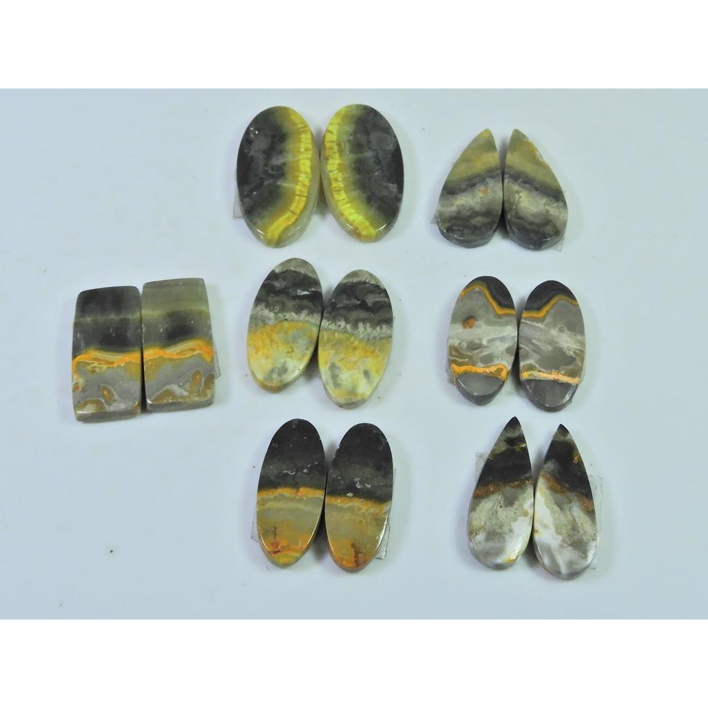 18-25 MM Natural Bumble Bee Jasper Pair Mix Cabochon Gemstone 7 Pair Lot C-763