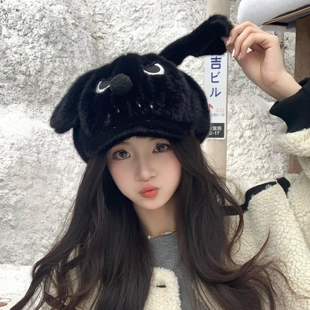 Plush Puppy Baseball Cap Thickened Octagonal Cap Beret Peaked Cap Outdoor