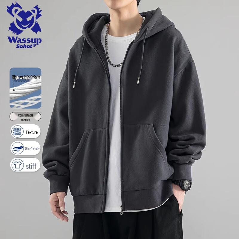 Wassup Sohot Men's Full-Zip Hooded Jacket
