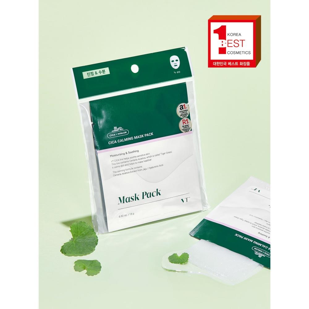 The VT Cica Calming Mask Pack, comprising 4 sheets, offers a dual effect of soothing and cooling for the skin. This product helps stabilize overheated skin due to stress and provides a natural cooling sensation to alleviate skin troubles. With excellent moisturizing benefits, it keeps facial skin hydrated, while the ample essence supplies essential nutrition and moisture.