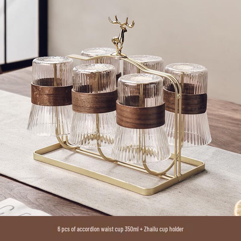 Model6-Piece Accordion Waist Glass Teacup Set with Golden Deer Holder