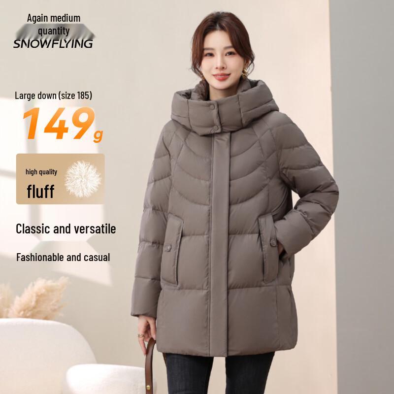 Xuezhongfei Women's Mid-Length Hooded Down Jacket