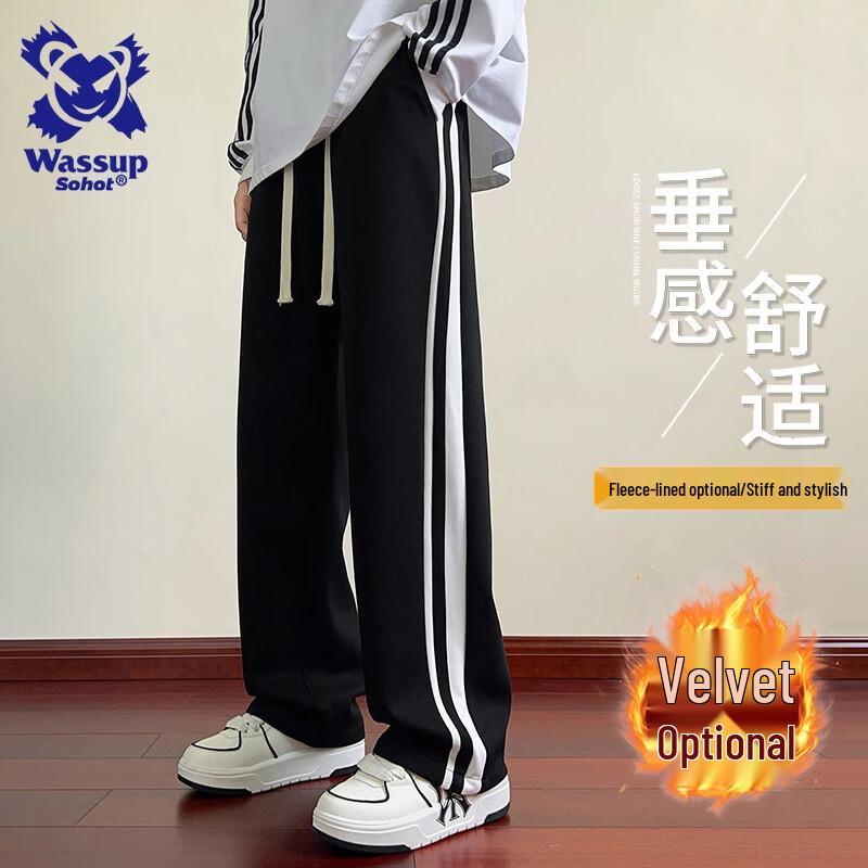 Wassup Sohot Men's Casual Loose Straight-Fit Striped Sweatpants
