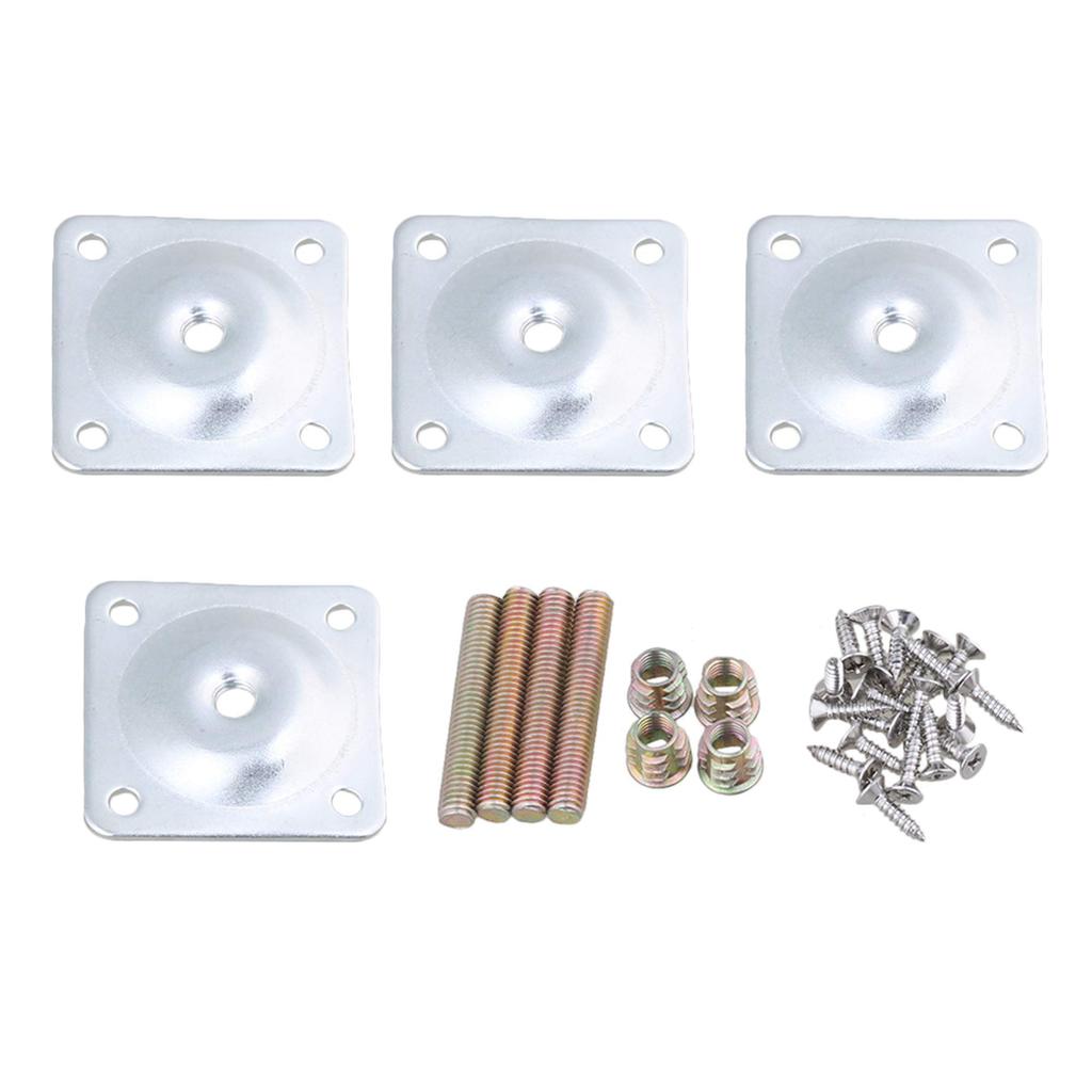 Logyues 4-Pack Furniture Leg Mounting Plates, Washers, Square, 4.8x4.8cm, Iron, 12 Degree Angle, with Screws, Silver