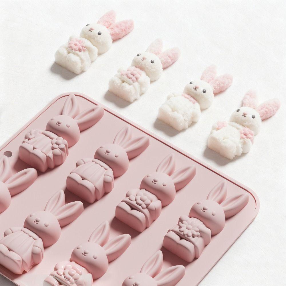Non-Stick Bunny Muffin Pan Food Grade Silicone Chocolate Molds Cute Easter Bunny Molds DIY Crafts