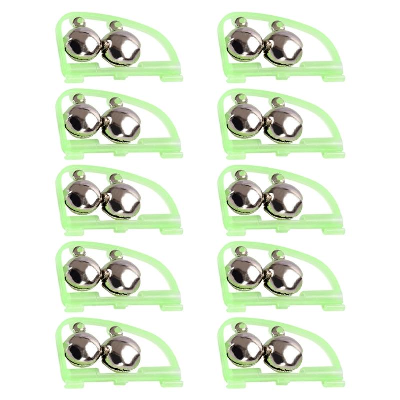 10pcs Glow Night Indicator Double Bells Alarm Fishing Gear Equipment for Lake River Arched Fishing Bells Rod Alarm