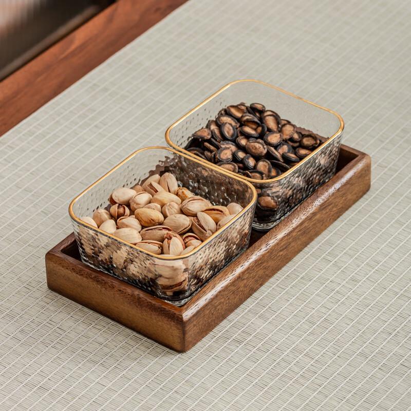 Walnut Wood & Glass Decorative Fruit Tray